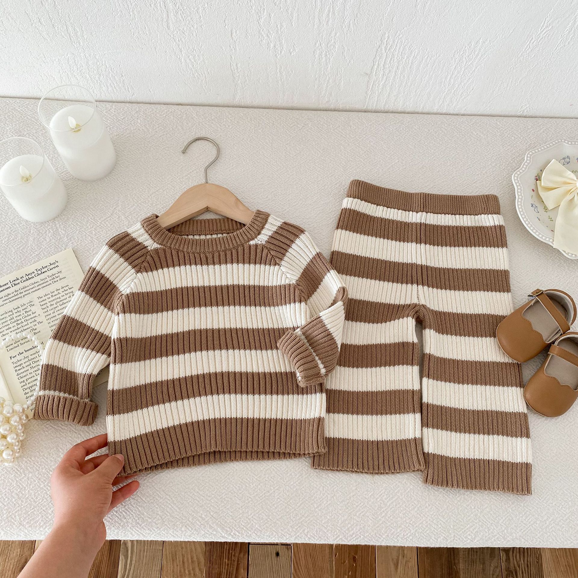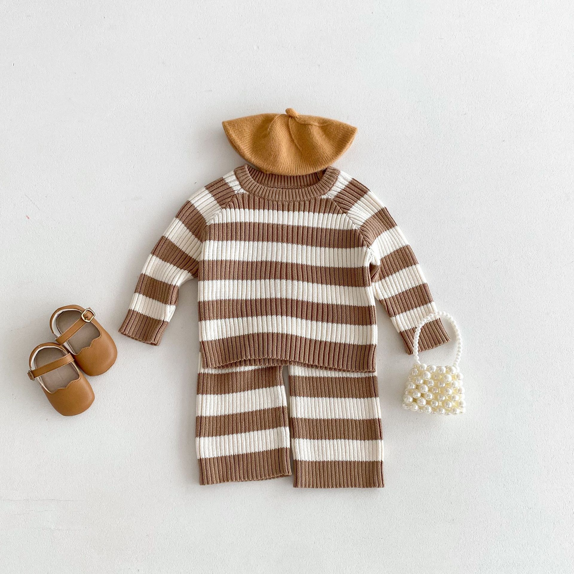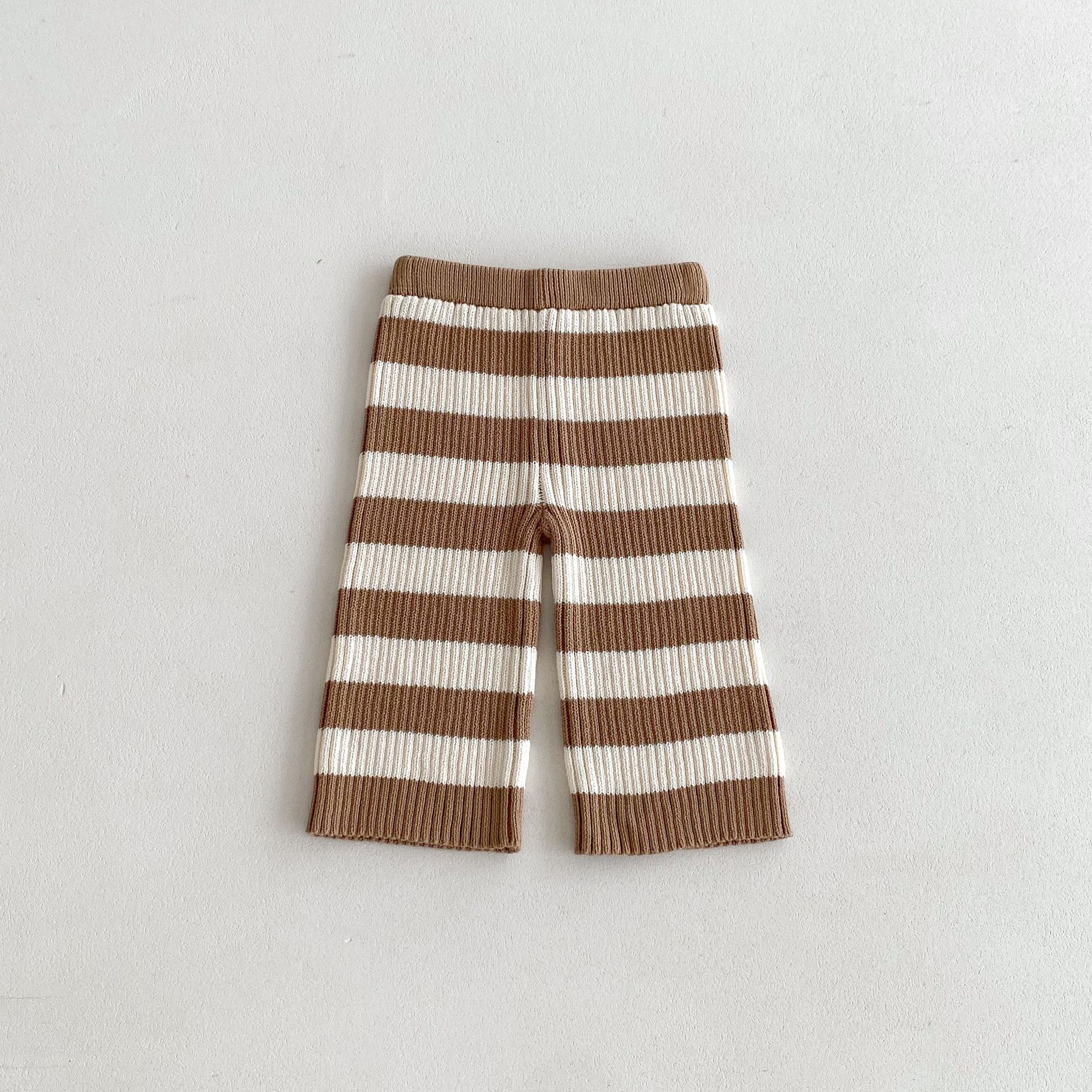 2024 Autumn Clothing Korean Children's Clothing Sweater Striped Long Sleeve Pullover Men's And Women's Baby Pants Autumn And Winter Sweater Suit