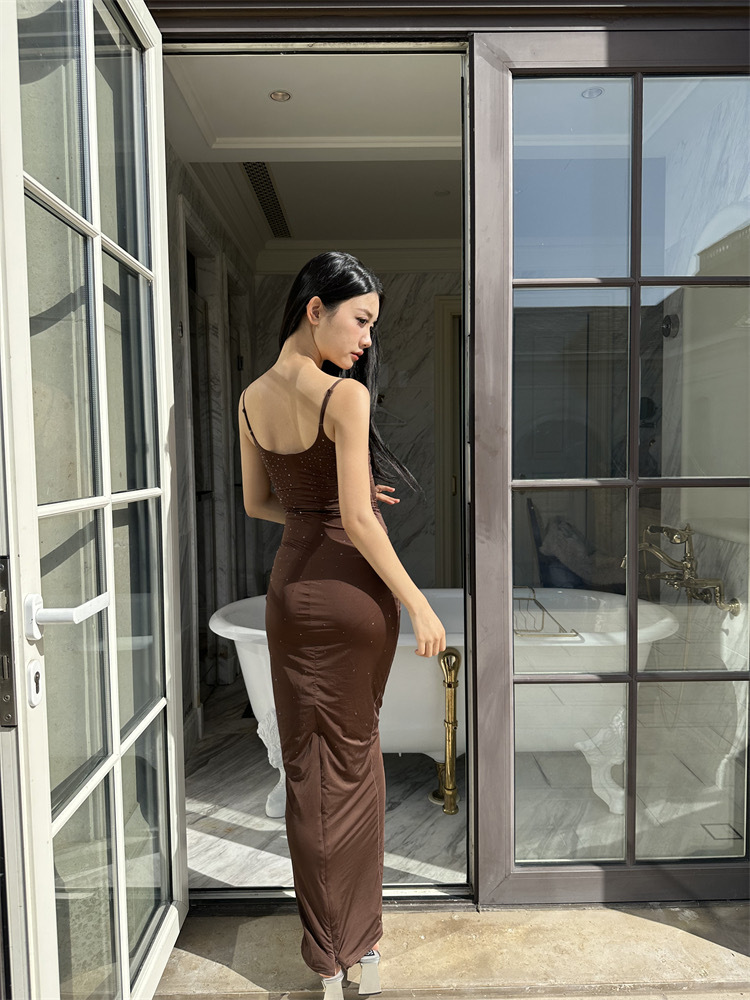 Dress Elegant Temperament Flash Diamond Slim Strap Dress Hot Girl Hip Dress