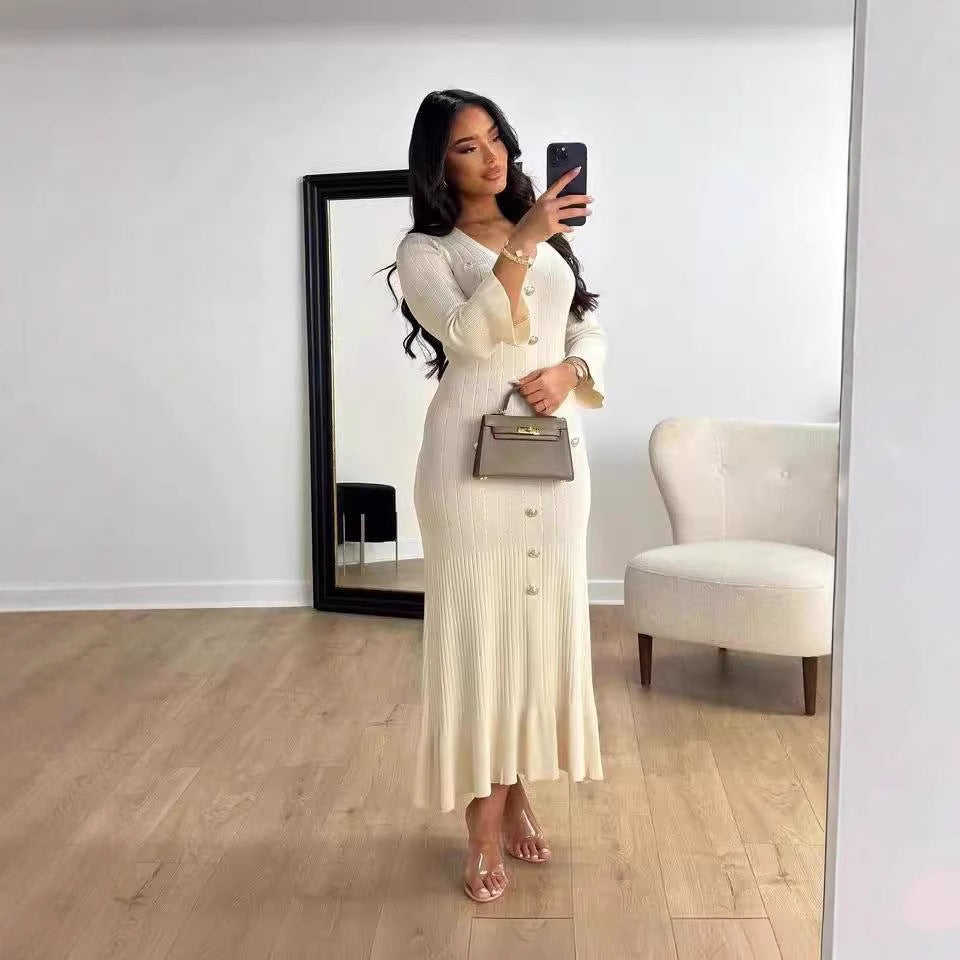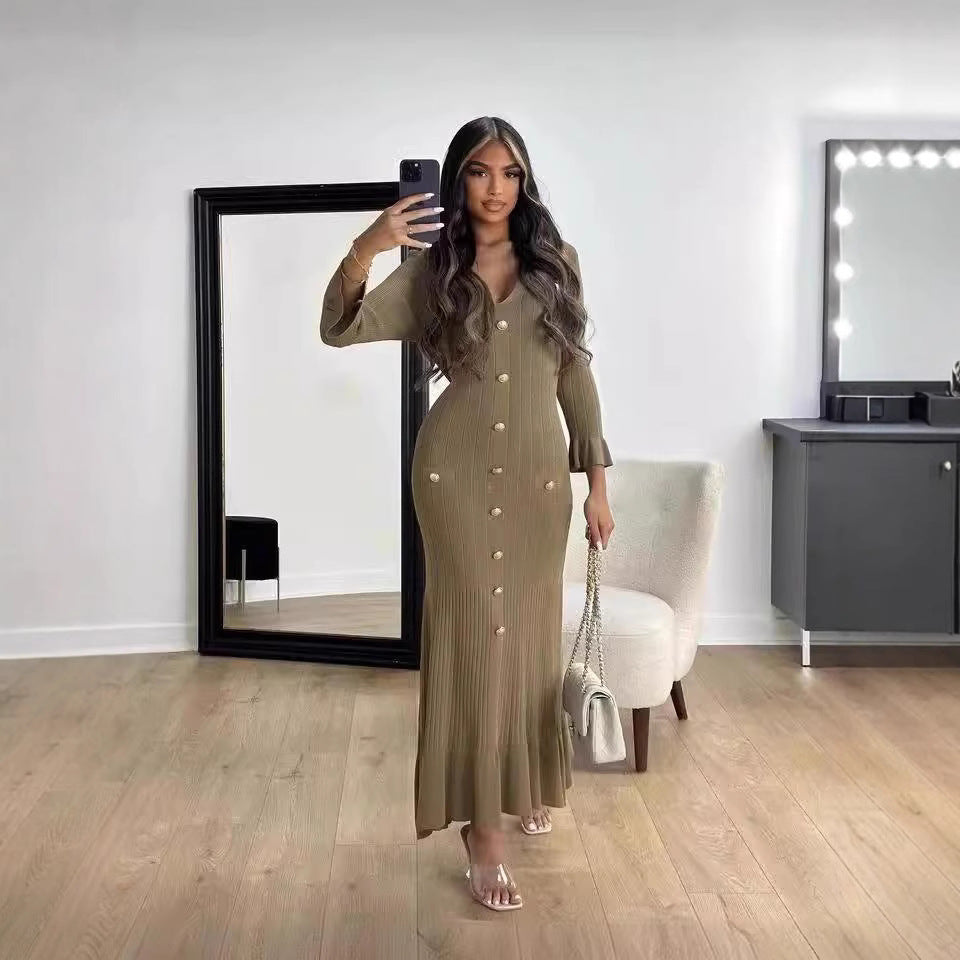 Fallwinter Slim Knitted Long Sleeve Fishtail Dress