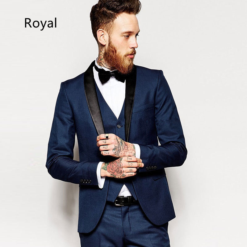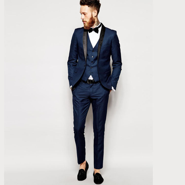 Men's Fashion Simple Solid Color Suit Three-piece Set