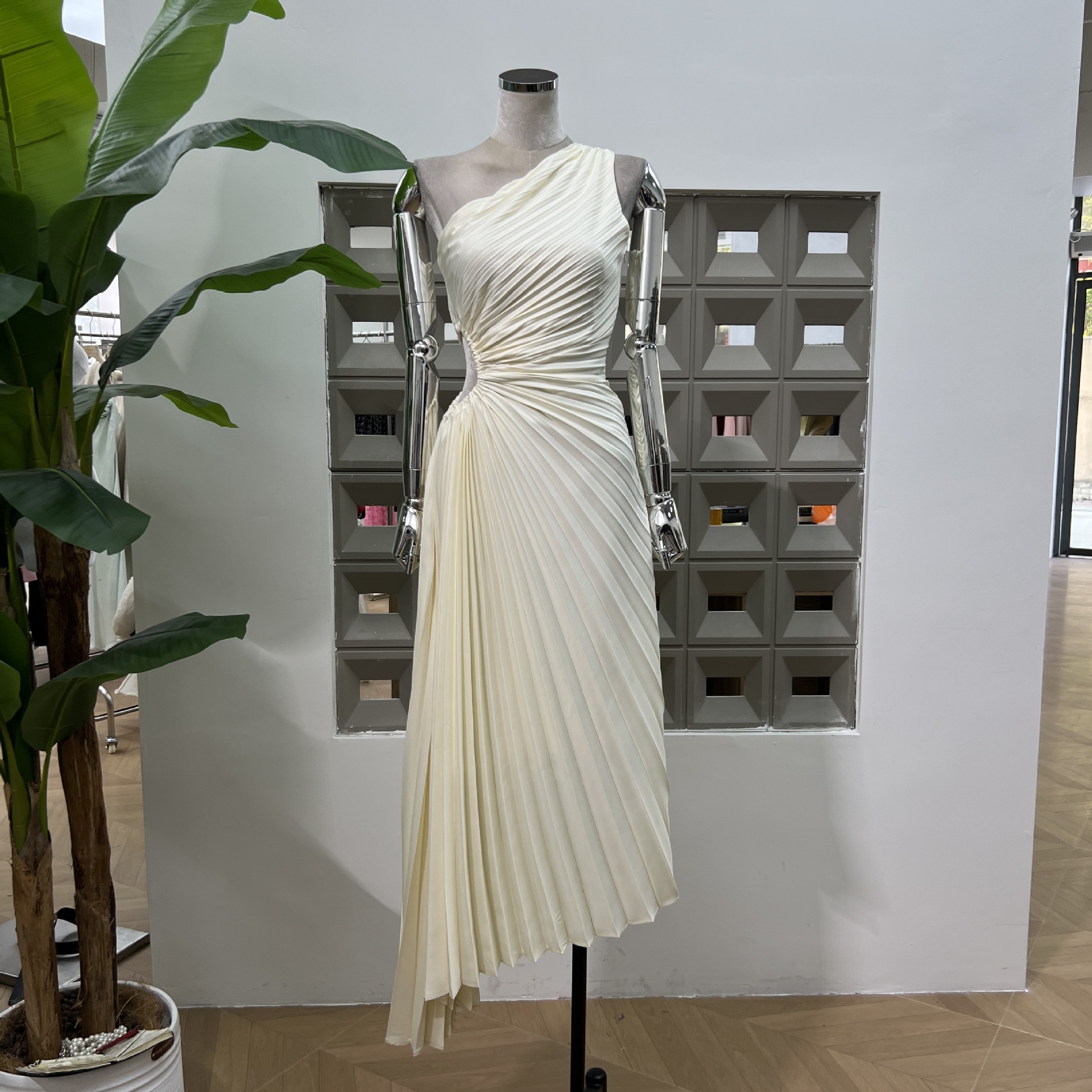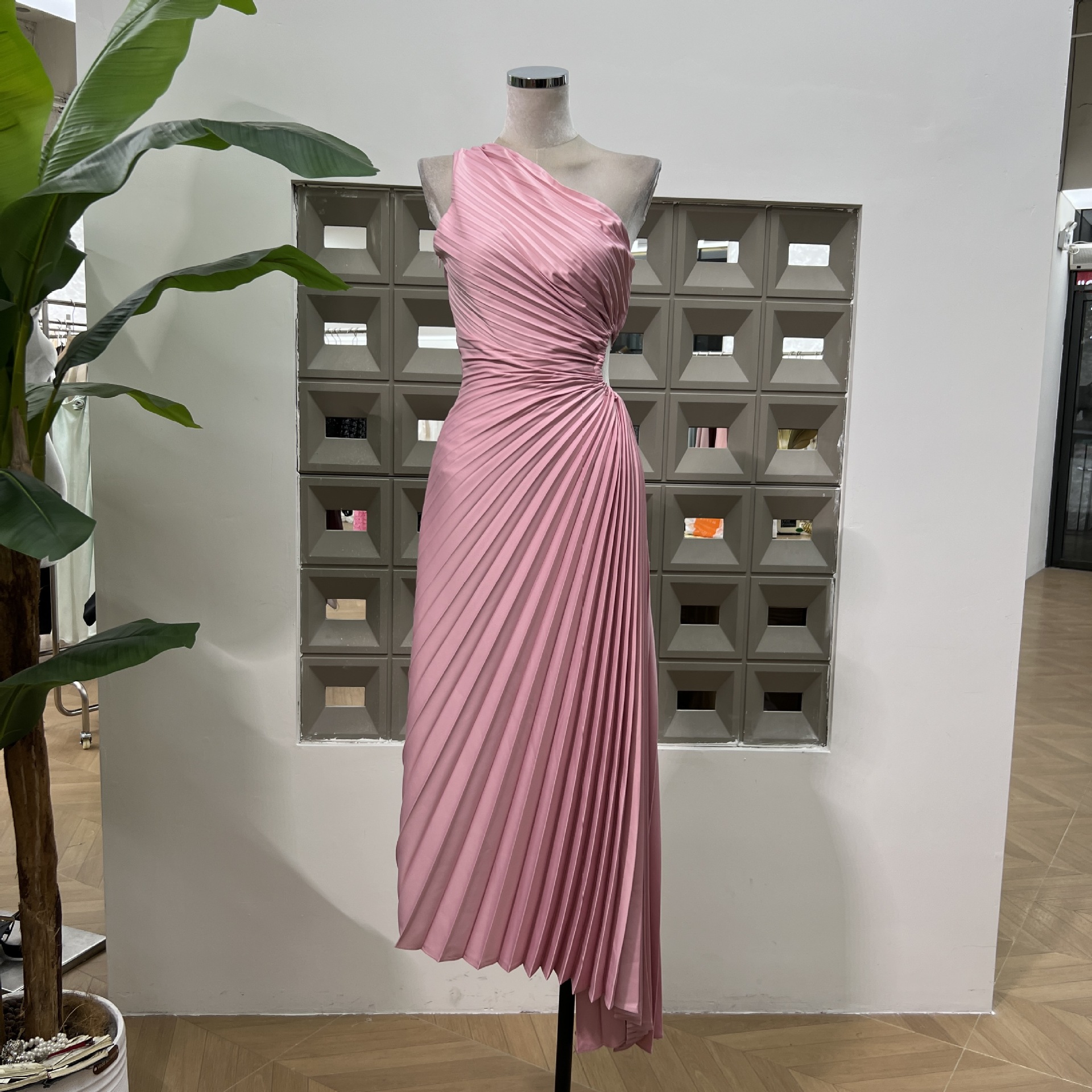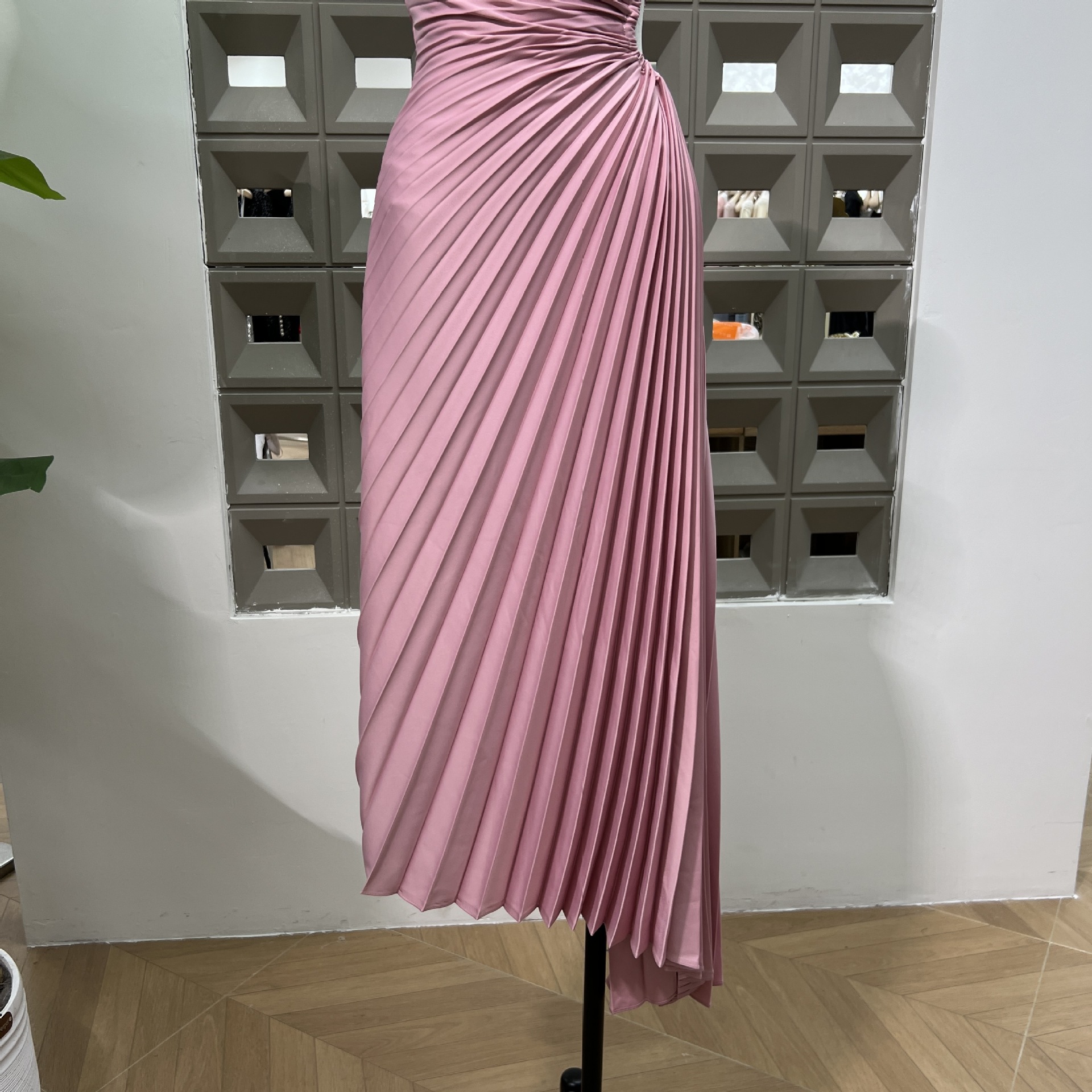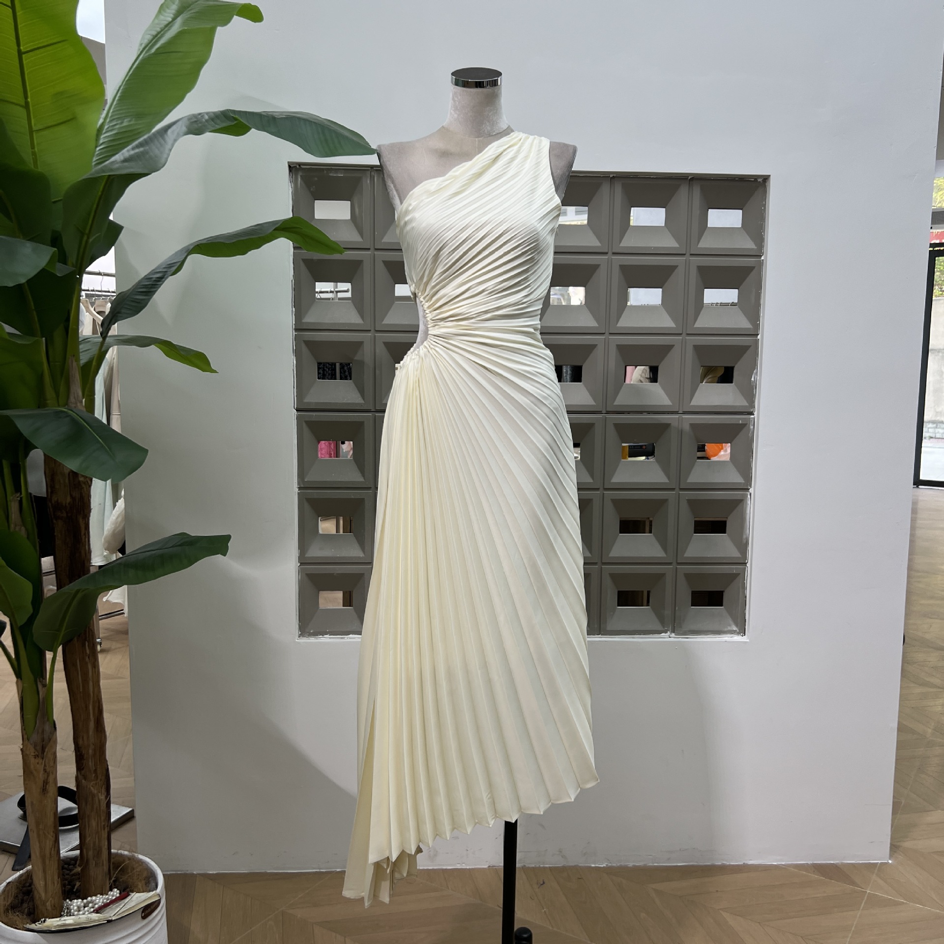Multi-colour Options For Gentle Temperament Pleated Waist, One-shoulder Irregular Skirt, Goddess Elegant Dress In Summer
