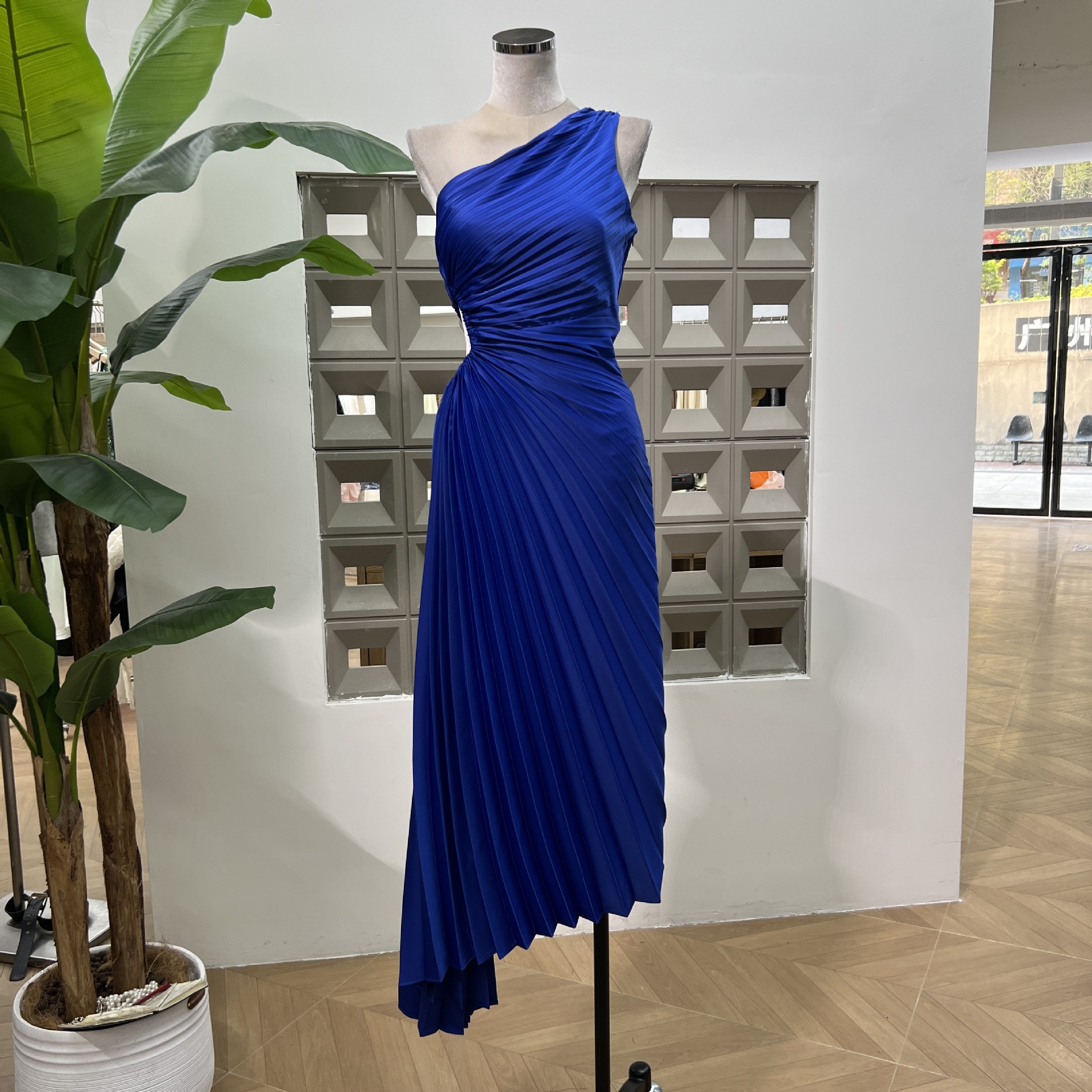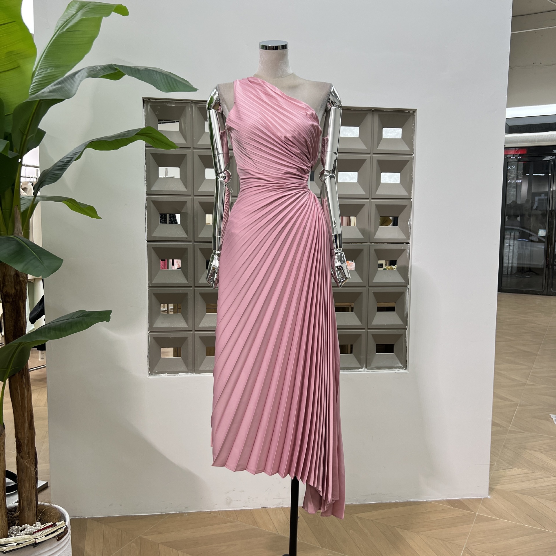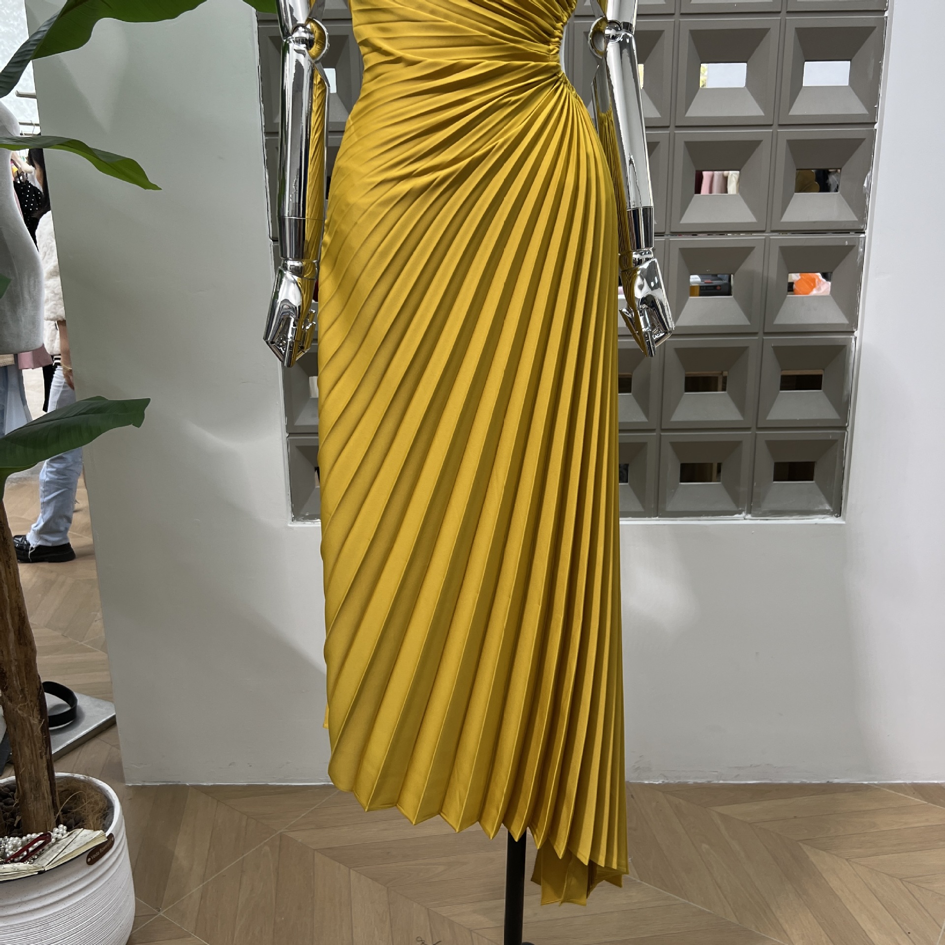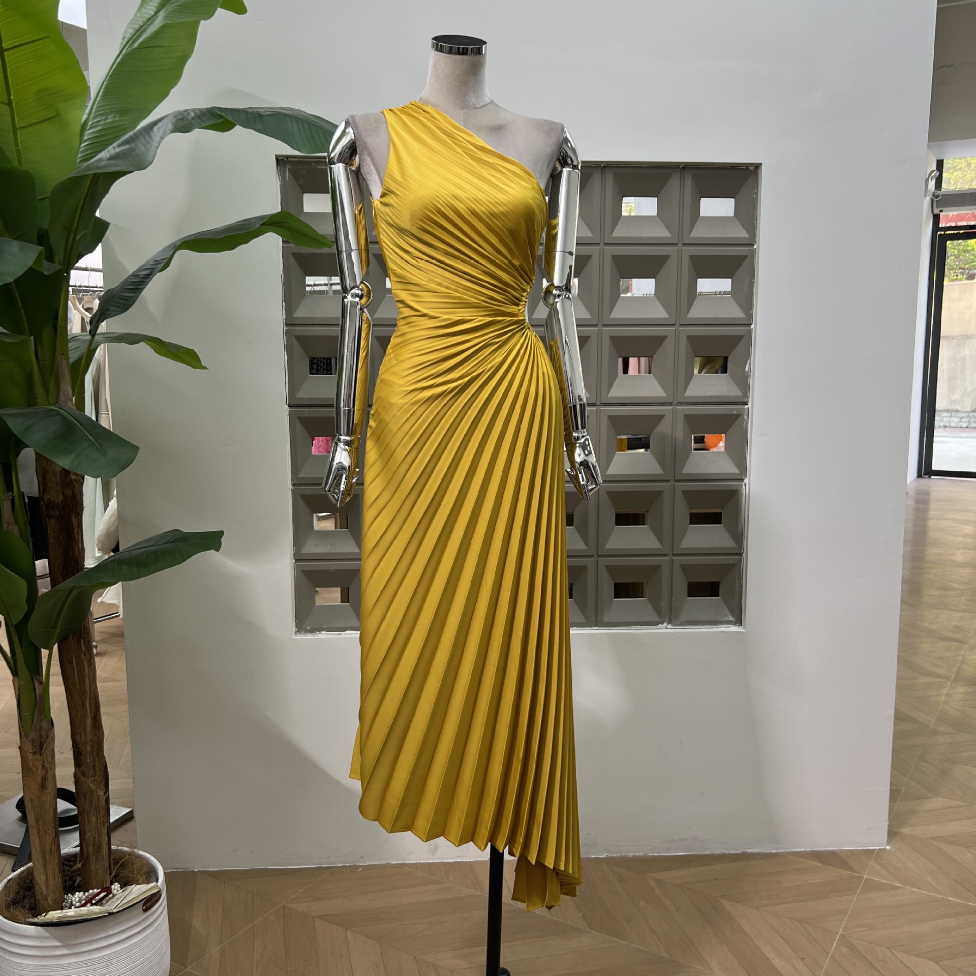 Multi-colour Options For Gentle Temperament Pleated Waist, One-shoulder Irregular Skirt, Goddess Elegant Dress In Summer