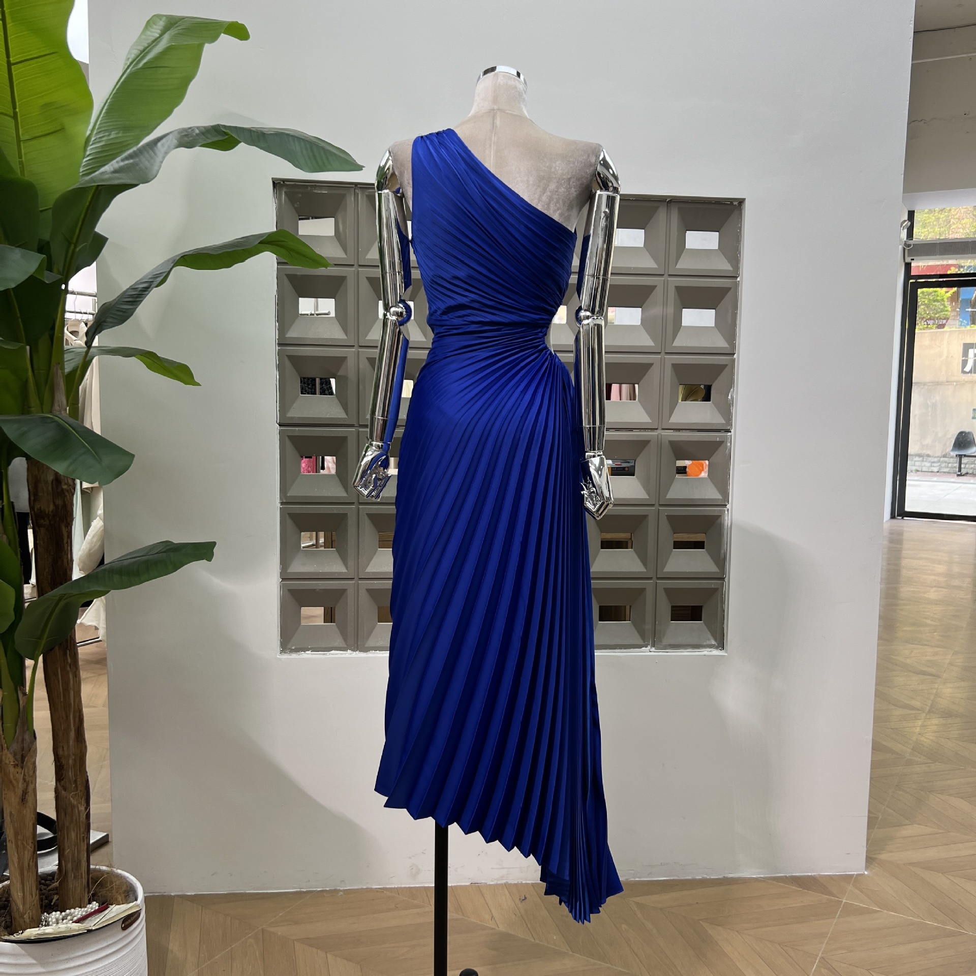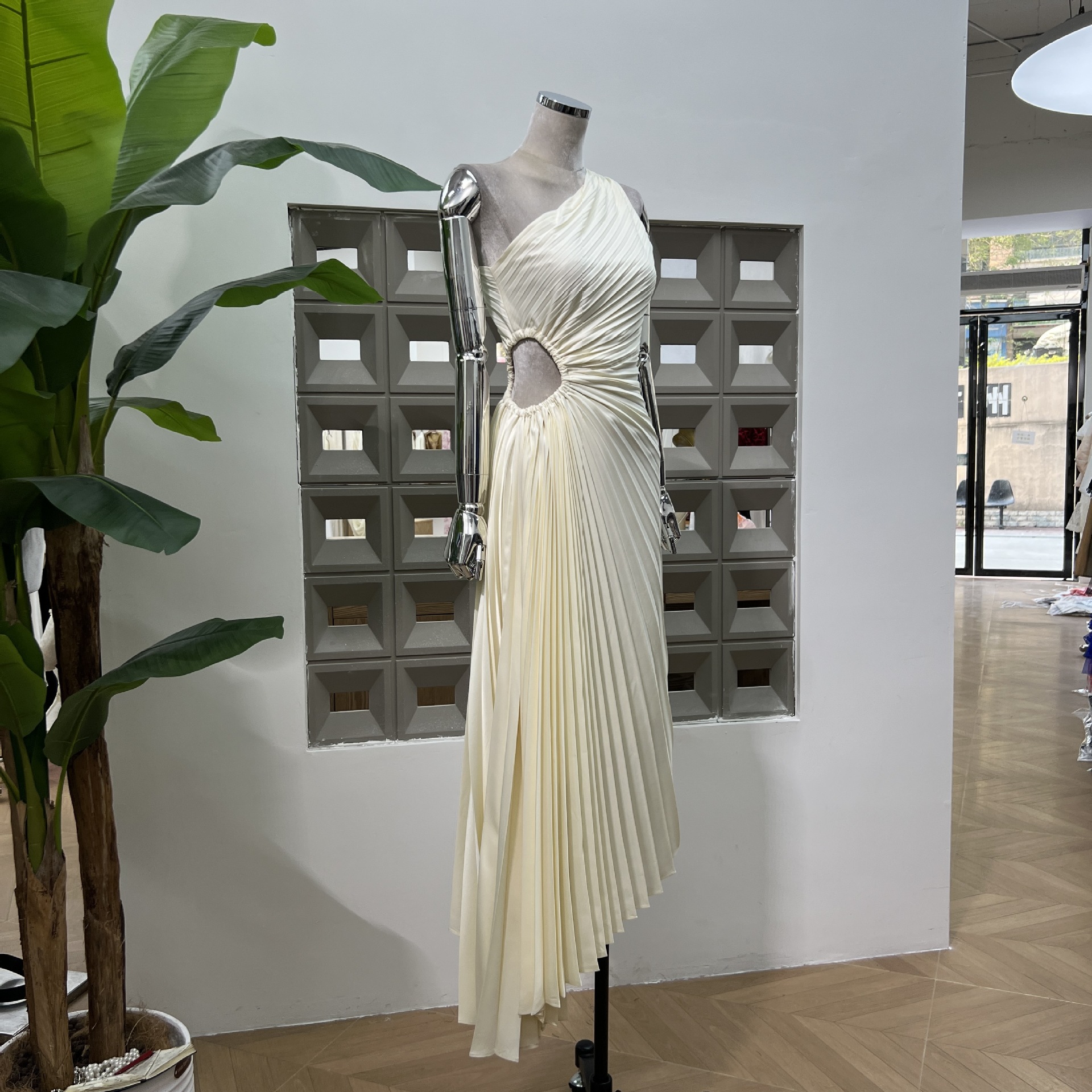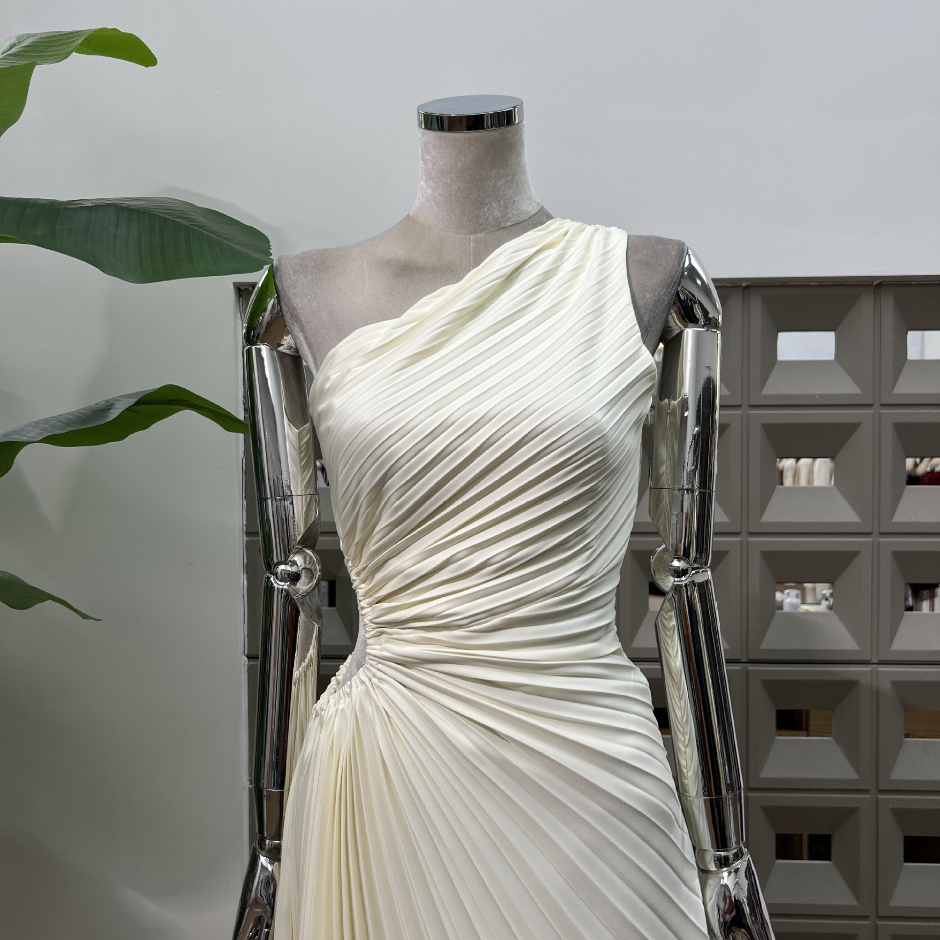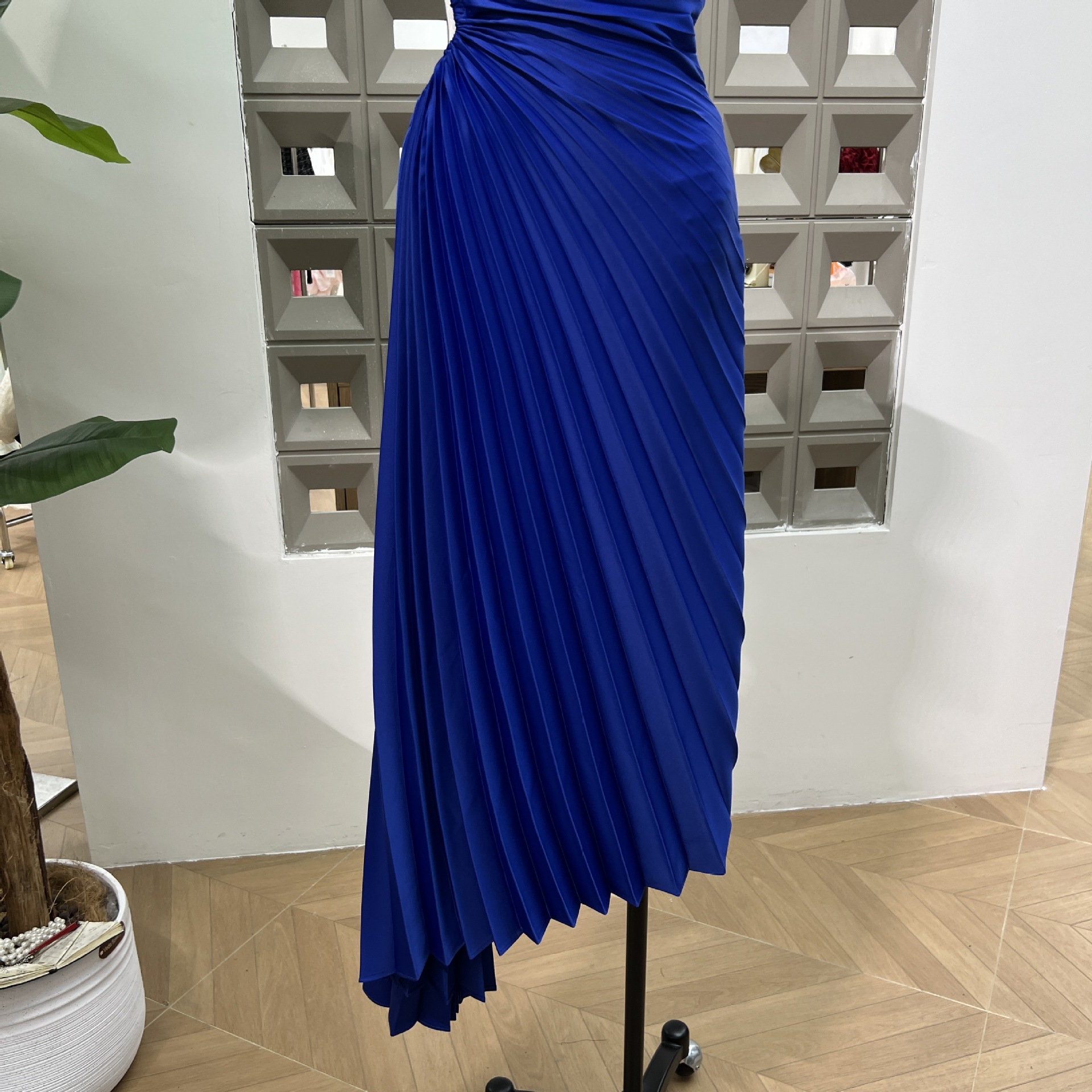 Multi-colour Options For Gentle Temperament Pleated Waist, One-shoulder Irregular Skirt, Goddess Elegant Dress In Summer