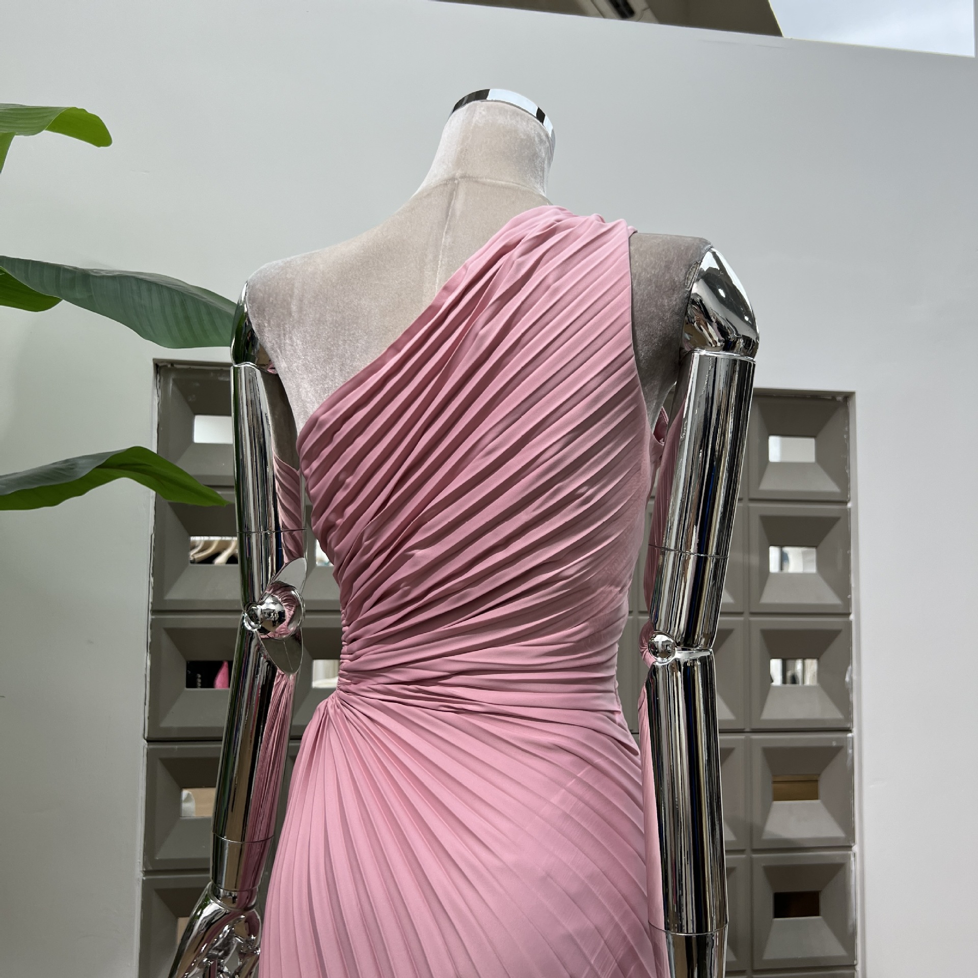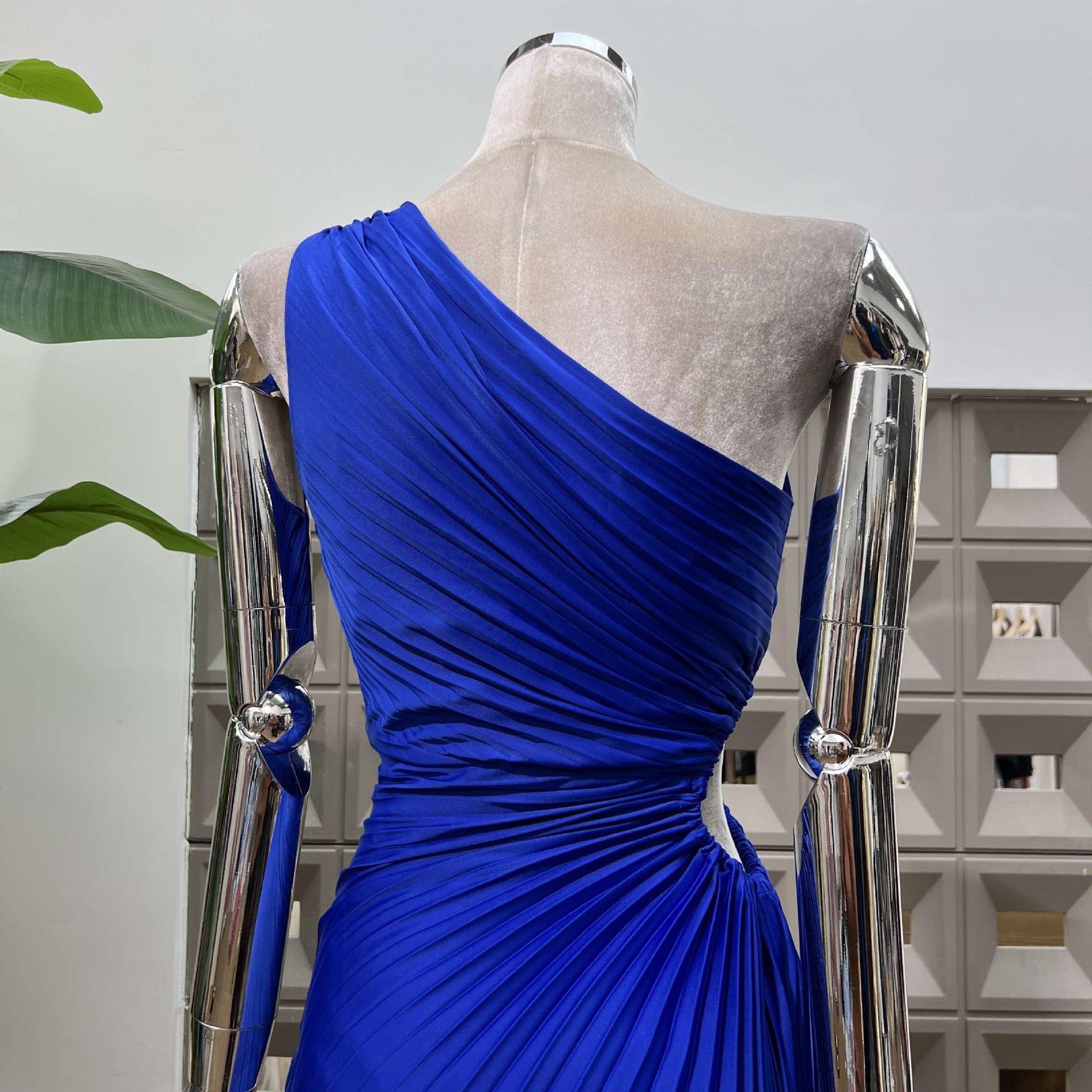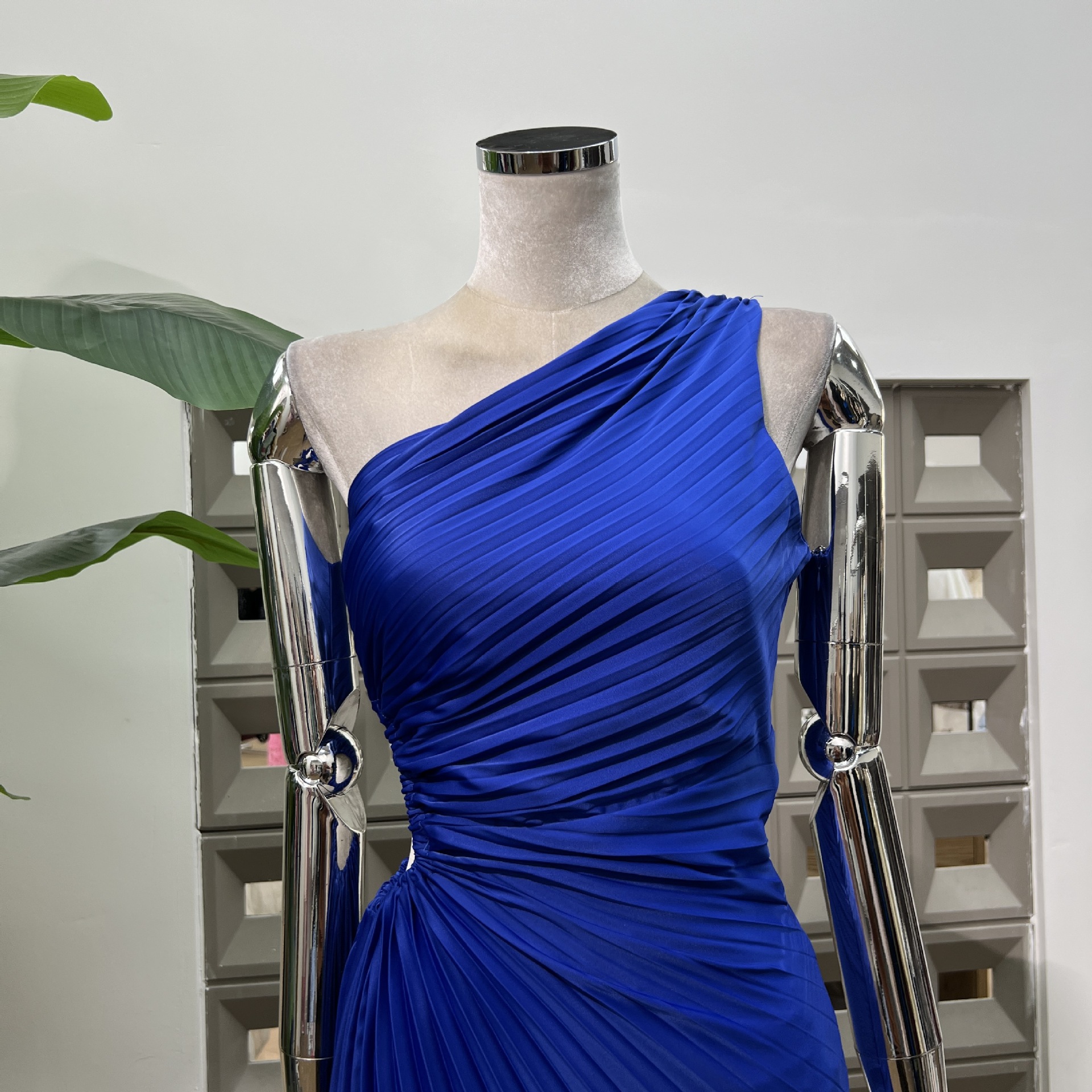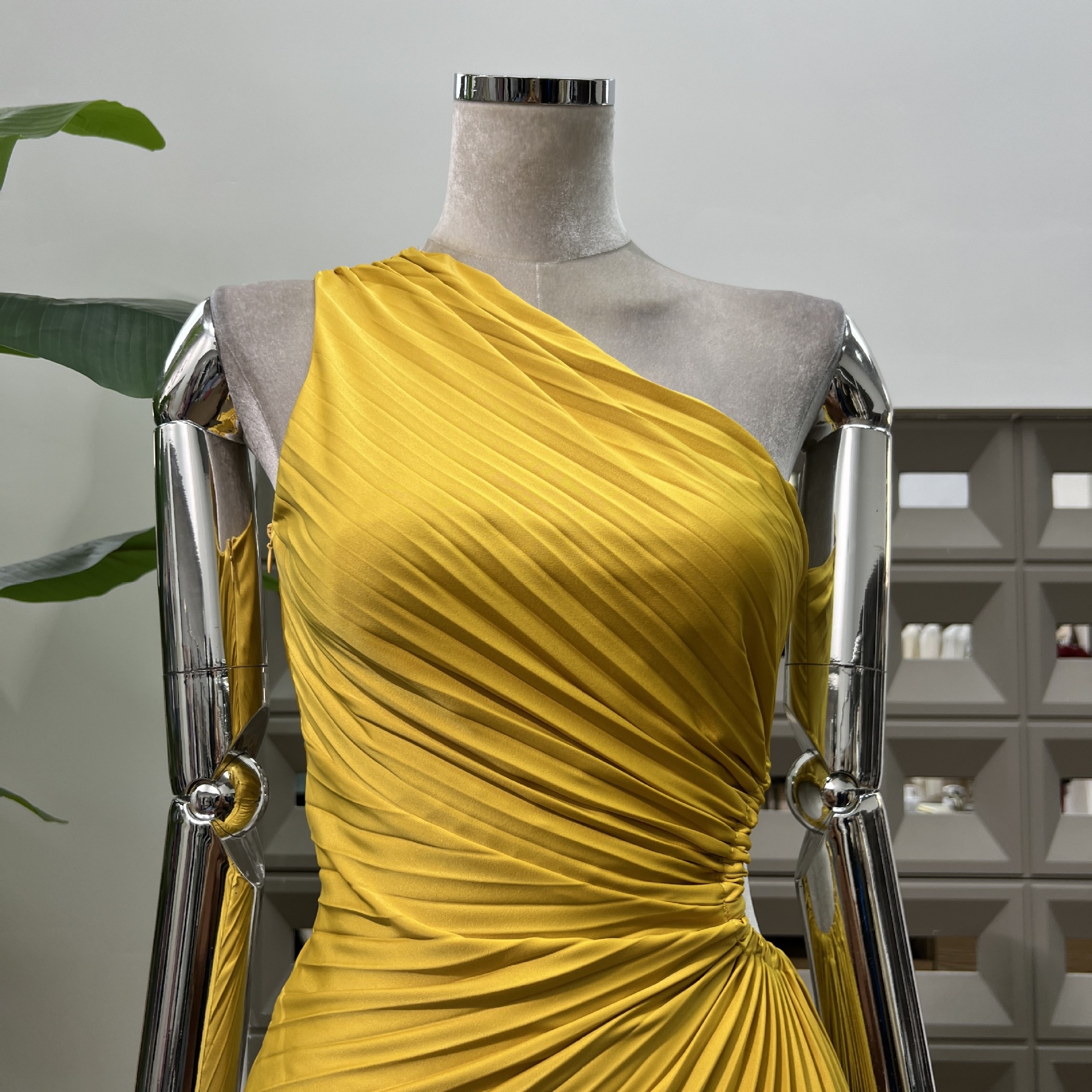 Multi-colour Options For Gentle Temperament Pleated Waist, One-shoulder Irregular Skirt, Goddess Elegant Dress In Summer
