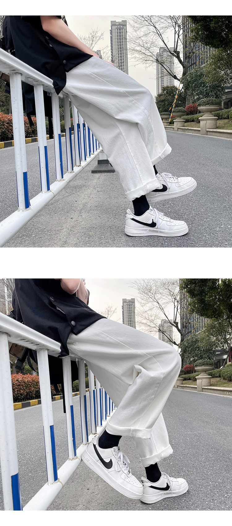 New White Jeans Men's Ins Trendy Brand Loose All-match Wide-leg Pants Casual Straight Pants Men's Spring And Autumn