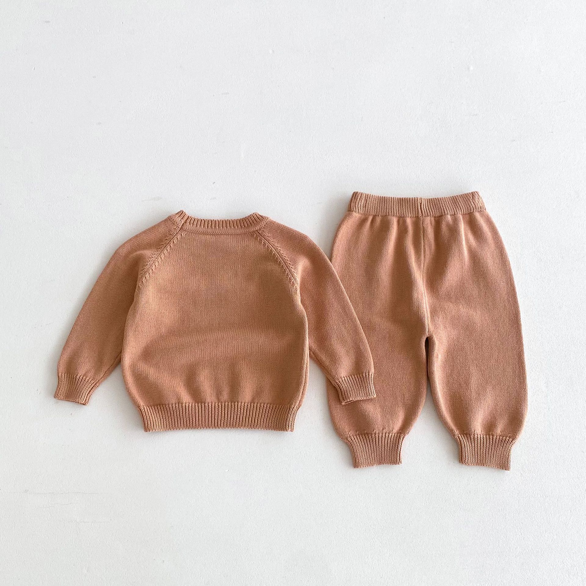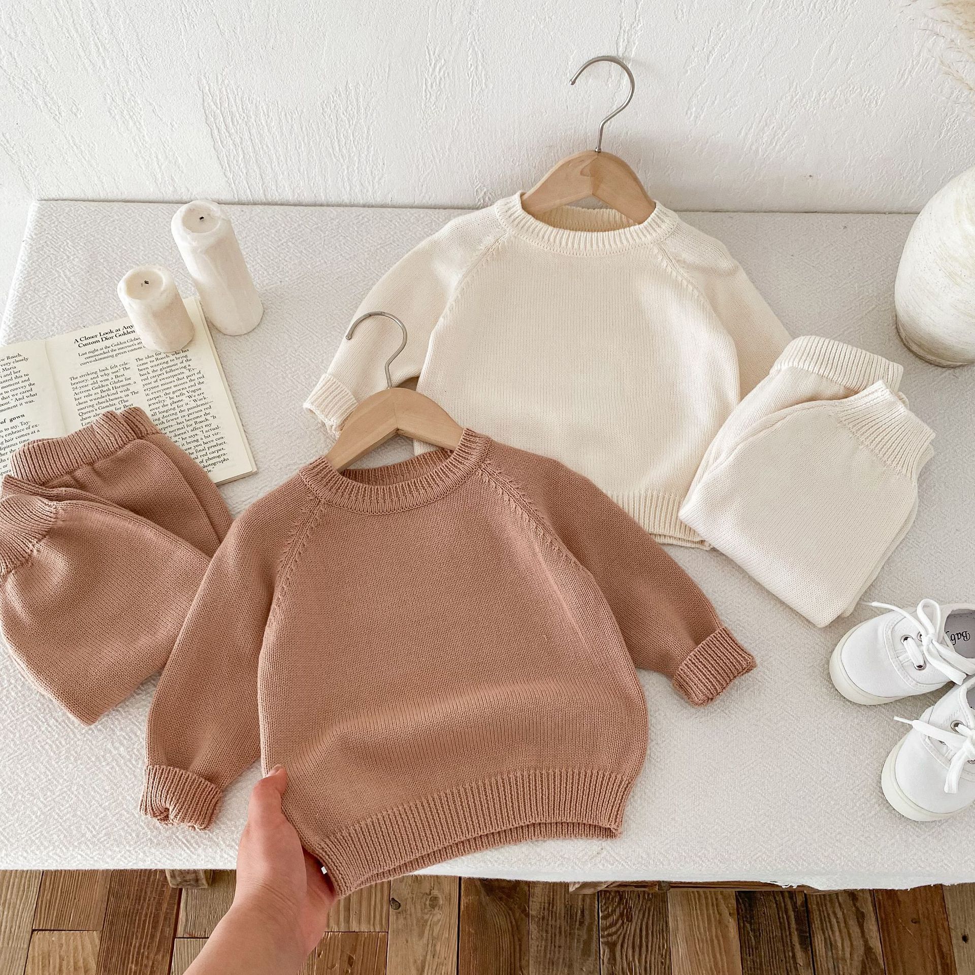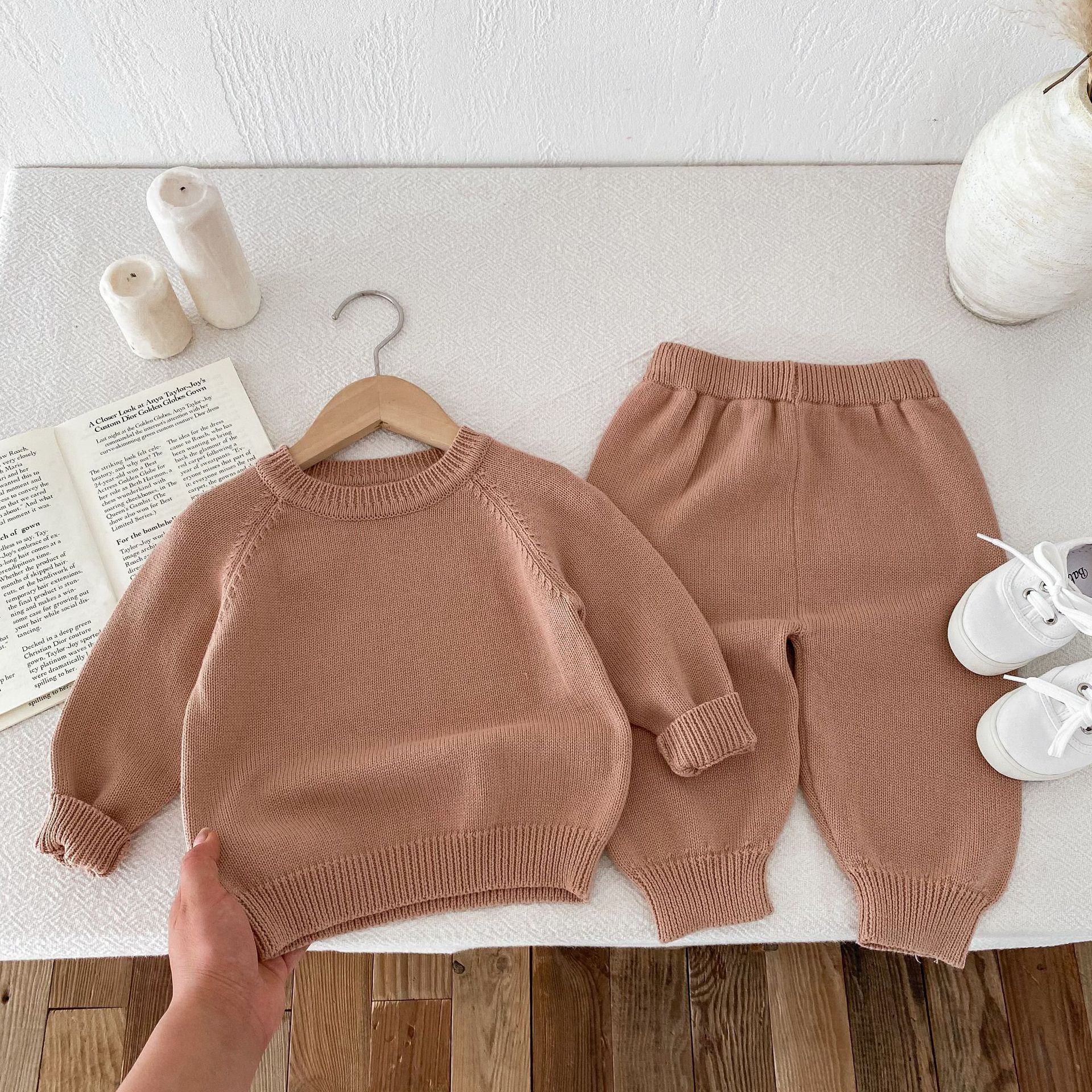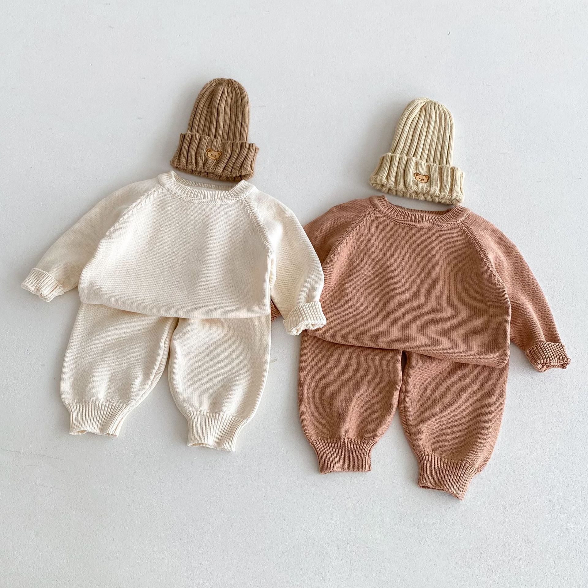 Sweater All-match Men's And Women's Korean Edition Solid Color Cute Pullover Raglan Long Sleeve Top Trousers Autumn And Winter Knitted Suit